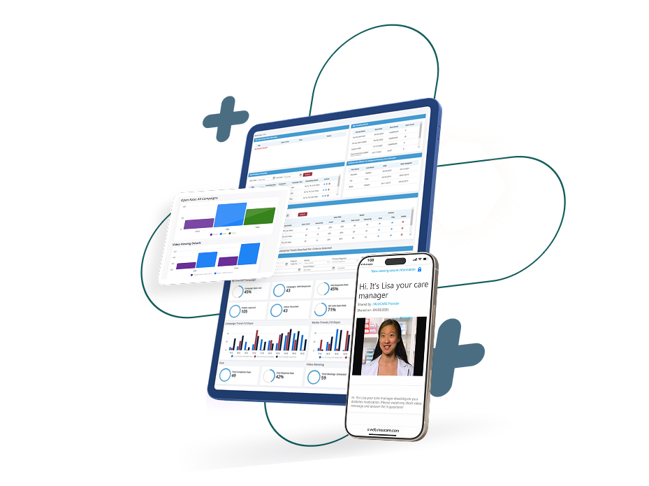 With Me+U Care, every SMS can include a short video, image, or secure form that feels personal and human.